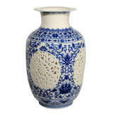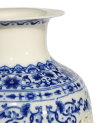אגרטל גבוה מסוג פורצלן (חרסינה). בסיס צבע לבן. עיטורים כחולים. סגנון אסייתי