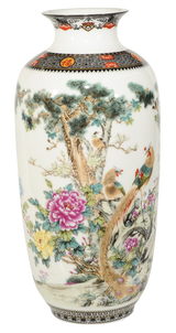 אגרטל גבוה מסוג פורצלן (חרסינה). בסיס צבע לבן. פרחונית. סגנון אסייתי